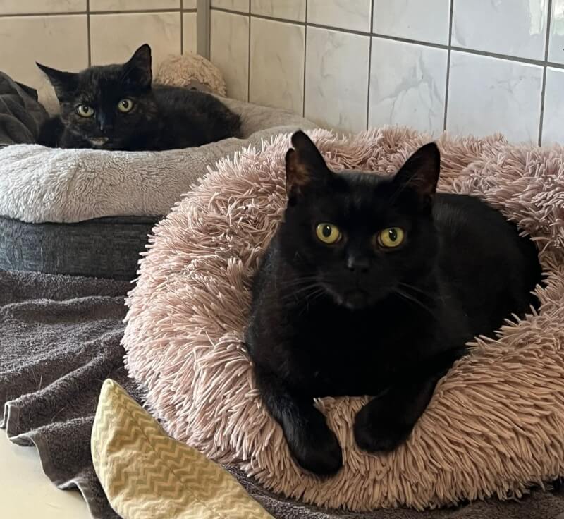 Die beiden Katzen Mini und Adi, beide ca. 10 Jahre) möchten nur gemeinsam in ihr neues Zuhause ziehen. Sie sind Freigänger und wünschen sich daher einen Platz mit sicherem Zugang ins Grüne.