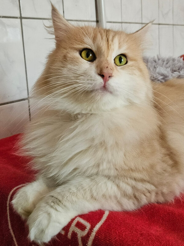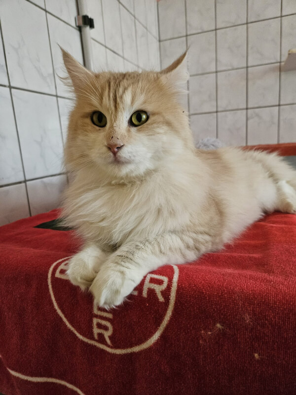 Ragnar ist ein kastrierter Kater mit einer stolzen und selbstbewussten Ausstrahlung. Er bewegt sich sicher durch seine Umgebung und tritt aufmerksam sowie souverän auf. Seine Präsenz zeigt, dass er weiß, was er möchte, ohne dabei aufdringlich zu sein. Ragnar bringt eine gefestigte Persönlichkeit mit und wirkt insgesamt ruhig und ausgeglichen.
