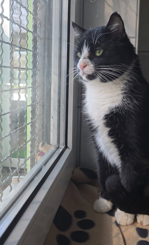 Der kastrierte Kater Xeno wird auf ein Alter von etwa vier bis sechs Jahren geschätzt und sucht ein passendes Zuhause bei verständnisvollen Menschen. Gegenüber neuen Bezugspersonen zeigt er sich zunächst eher zurückhaltend und beobachtend, benötigt also etwas Zeit, um Vertrauen aufzubauen und sich in einer neuen Umgebung sicher zu fühlen. Hat er jedoch erst einmal Vertrauen gefasst, entwickelt er sich zu einem selbstbewussten und eigenständigen Kater, der seine Umgebung aufmerksam erkundet und seine Bezugspersonen klar in seinen Alltag einbindet.
